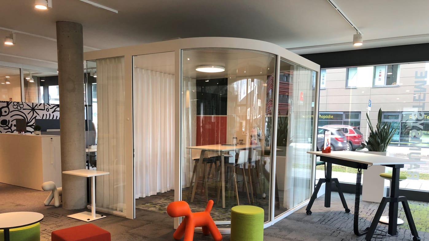 On over 300 m² we showcase forward-thinking workplace concepts that support a variety of work methods: from a single-user workstation that encourages focused working, to collaboration opportunities, to integrated workstation solutions for project teams in agile organisations.