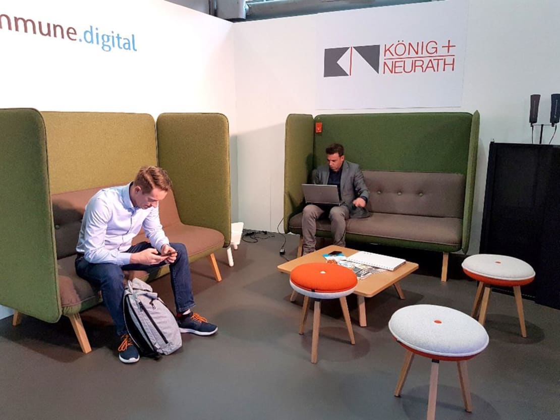 Work smarter, not harder - that was the motto that guided the entire booth, planned and furnished by our K+N SMART.OFFICE solution. The system facilitates transparency of use of the different resources across the entire area. One advantage for companies and municipalities undergoing change as this solution supports the continuous optimisation of areas and space offers.